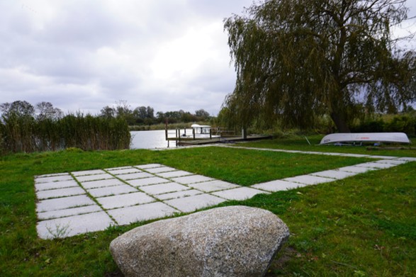 Das Grundstück bietet mehrere gemeinschaftlich nutzbare Terrassen sowie einen Bootsanleger, der auch zum Schwimmen genutzt werden kann.
