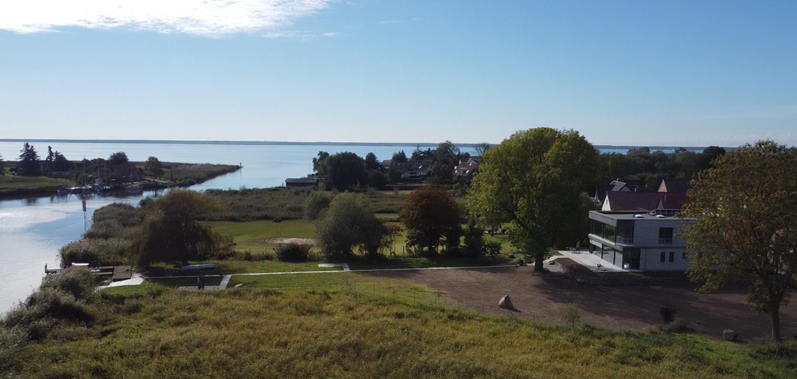 Das Grundstück bietet mehrere gemeinschaftlich nutzbare Terrassen sowie einen Bootsanleger der auch zum Schwimmen genutzt werden kann.
